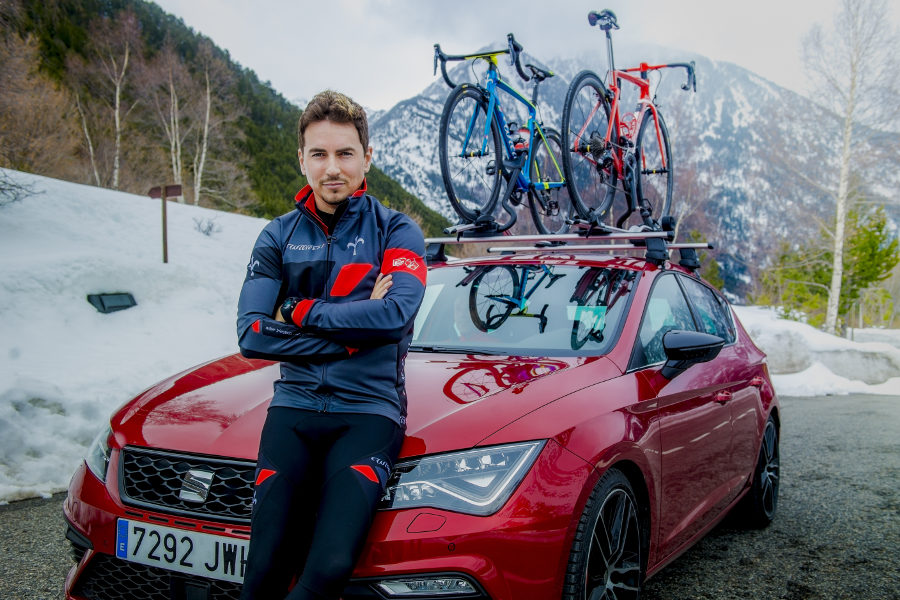 Para el piloto de MotoGP es importante prepararse físicamente, pero también hacerlo de forma segura. “Cuando entreno en bicicleta por carretera siempre me escolta mi León Cupra para que los coches me adelanten de la manera más segura posible. Así minimizo riesgos”, declara el embajador de SEAT. Para bajar los puertos de montaña Lorenzo carga su bicicleta en el coche. “Hay que intentar alargar la vida deportiva al máximo y el coche nos ayuda a evitar riesgos innecesarios”, concluye el español.