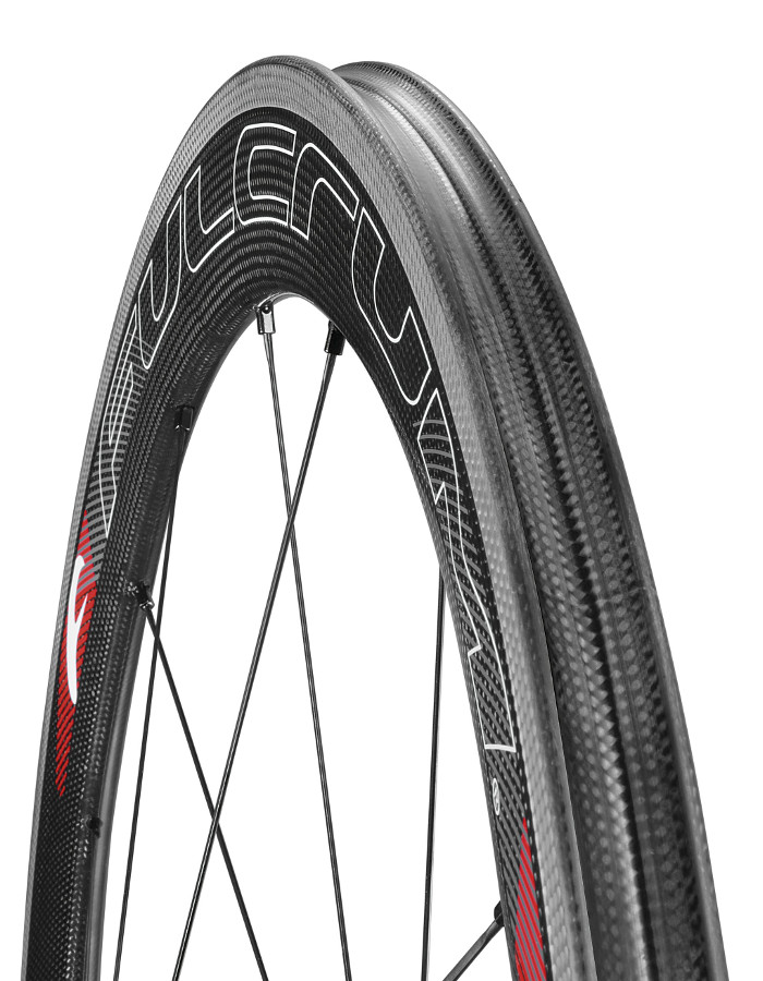 Los perfiles de 35 y 50 mm han dejado su sitio a las nuevas llantas de fibra de carbono de 40 y 55 mm. La primera de ellas representa una solución versátil: tan ligera que no supone un peso extra en las subidas más duras, tan reactiva que permite disputar los sprints, y tan aerodinámica que constituye una ventaja en las prestaciones en llano. Por su parte, la versión de 55 mm asegura una penetración en el aire aún mayor, por lo que es un poco menos versátil que la de 40 mm en la montaña pero destaca sobremanera a altas velocidades.